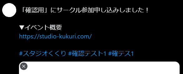 投稿内容は、ボタンを押したイベントの参加表明、そのイベントのURL、ハッシュタグになります。